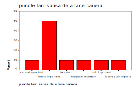 Cariera este privita ca fiind cel mai important motiv al angajarii de catre 40% dintre respondenti, iar 40% dintre acestia îl considera foarte important si important. Obiectivul carierei a fost mai putin urmarit la angajare doar de catre 20% dintre respondenti. Acest lucru poate avea drept cauza o emancipare a fortei de munca timisorene si o reorientare a acesteia (mai ales a tinerilor absolventi) catre o împlinire pe plan profesional