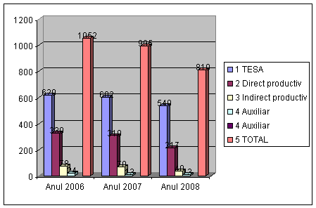 Pentru evaluarea dinamica a resurselor de forta de munca a Directiei Silvice se prezinta situatia personalului grupat pe principalele categorii in perioada 2006-2008;