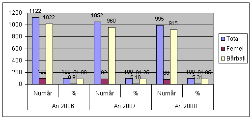 Tabelul nr. 5 Structura si evolutia comparativa a personalului pe sexe
