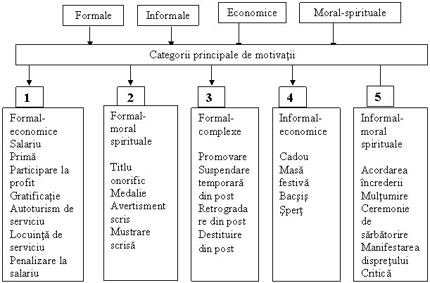 Pentru ca motivarea sa fie eficienta este necesar ca in cadrul firmei sa se apeleze la motivatii din toate cele cinci categorii. Utilizarea cea mai frecventa si intensa o au motivatiile de natura formala, cele care sunt stabilite prin strategia si politicile firmei si pentru care se apeleaza la anumite metode si tehnici manageriale si economice. Nu trebuie subestimat insa si potentialul motivational al motivatiilor informale, mai ales al celor moral-spirituale. La aceasta din urma exista o mare sensibilitate la majoritatea salariatilor, prezentand si marele avantaj ca nu costa nimic firma. In ceea ce priveste motivatiile informal-economice, utilizarea acestora se recomanda sa fie realizata cu mare atentie, respectand cu strictete legile si morala societatii din fiecare tara. Apelarea la cadouri si mese de protocol sunt modalitati practicate relativ frecvent in firmele din tarile dezvoltate, evident subordonate unor obiective bine precizate si in anumite conditii, potrivit regulamentelor si procedurilor prestabilite.