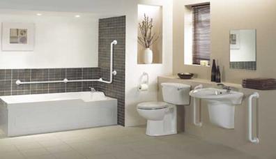 Persoanele varstnice sau acele persoane ce sunt dependente de diferite mijloace ajutatoare de mers nu necesita alte adaptari decat montarea unor bare de sprijin atat pe perete cat si langa obiectele sanitare facilitandu-se in acest fel deplasarea, ridicarea sau asezarea pe WC sau in cada de baie. Pentru evitarea alunecarii, datorita suprafetelor lucioase si umede, pardoseala, cuva dusului si chiar fundul cazii, pot fi acoperite cu un covor de cauciuc.