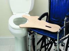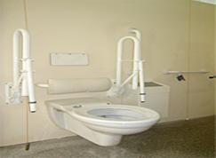 WC-ul va fi prevazut cu bare de sprijin pentru facilitarea asezarii si ridicarii, dar mai mult decat atat el va trebui inaltat cu ajutorul unui capac special pana la inaltimea de 50 cm (nivel la care se afla si sezutul fotoliului rulant) pentru a se usura transferul din fotoliu pe WC. Persoanele cu forta scazuta la nivelul membrelor superioare vor utiliza o placa de transfer pentru ca actiunea sa fie mai sigura si mai usoara.
