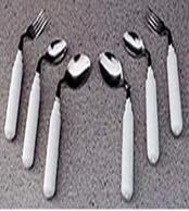 O atentie deosebita trebuie acordata persoanelor ce isi folosesc cu greutate membrele superioare, pentru acestea nefiind suficienta asigurarea autonomiei de deplasare. Adaptarea bucatariei in vederea imbunatatirii capacitatii de autoservire impune modificari ale tacamurilor si veselei. Tacamurile vor avea manerele ingrosate cu materiale textile sau plastice sau vor fi prevazute cu tot felul de sisteme de prindere in cazul persoanelor cu dificultati de prehensiune, persoanelor care au o mobilitate scazuta in articulatia pumnului si cotului, inclinarea radiala si coordonarea fiind dificila, lingura si furculita se va indoi spre zona radiala a mainii, usurand in acest fel utilizarea lor