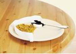 Farfuriile vor fi adanci, fixate pe anumiti suporti, ele pot fi mai inalte de partea opusa mainii folosite de catre bolnav pentru a preintampina caderea mancarii din aceasta.