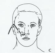 se masoara lungimea sondei pe obraz de la narina la tragus