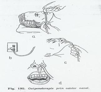 Cateterul nazal (sonda) are orificii laterale multiple. Se introduce in nara prin faringe, schimbandu-se de la o nara la alta. Se poate introduce si in laringe.