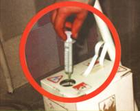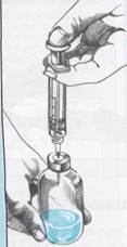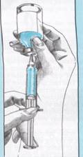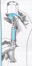 acul se introduce in fiola cu atentie fara a atinge marginile fiolei.