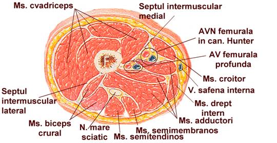 Fig. 1 - Sectiune transversala in 1/3 medie a coapsei (modificat dupa Netter)(11)