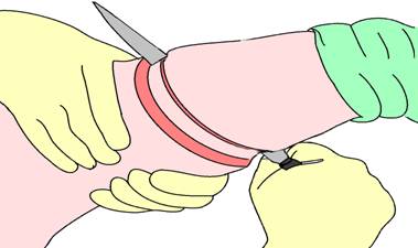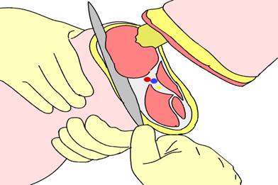 Se sectioneaza fascia care acopera muschii. Retractia superioara a pielii permite sectionarea muschilor coapsei, cu electrocauterul, la un nivel mai inalt.