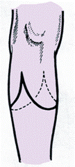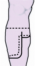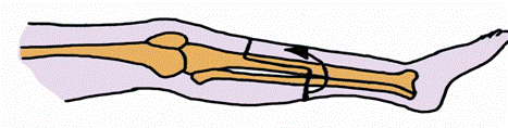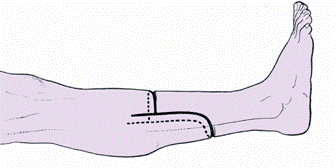 Fig. 4 - Trasarea inciziei cutanate in amputatia de gamba cu lambou mare posterior