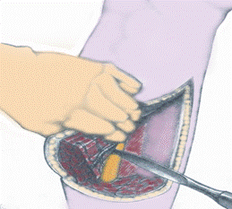 Fig. 7 - Prepararea lamboului anterior in amputatia de gamba