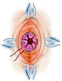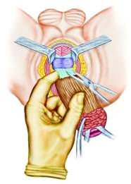 Dupa ce se stabileste ca rectul poate fi mobilizat, se trece la exereza propriu-zisa.