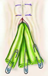 Fig. 10 - Inchiderea anusului cu un fir in cerclaj; incizia cutanata