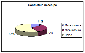 Conflictele intre membrii echipei creeaza nemultumiri in randul a ,11% in mare masura si a 32% in mica masura,dintre angajati.