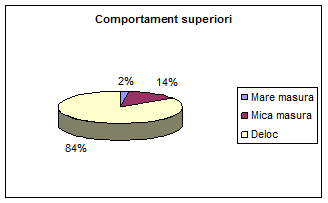 Cel mai mare procent (84%) nu sunt deranjati de comportamentul superiorilor,iar 2% sunt deranjati in mare masura.