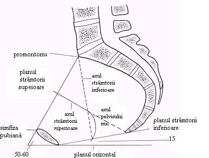 Planul stramtorii inferioare (ce trece prin varful coccisului si marginea inferioara a simfezei pubiene) formeaza un unghi de 10 care in decubit dorsal se anuleaza.