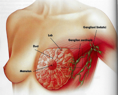 Ele colecteaza limfa in special din cadranul extern. Limfonodulii axilari dreneaza limfa la limfonodulii supraclaviculari. Limfonodulii mamari interni sau parasternali sunt asezati de-a lungul vaselor mamare interne. Ei colecteaza limfa din profunzimea glandei mai ales din cadranul medial si dreneaza fie in ganglionii cei mai interni ai regiunii supraclaviculare fie direct in ductul toracic (la stanga) sau in marea vena limfatica (in dreapta). Calea supraclaviculara directa (Mornard) este reprezentata prin vase eferente care pornesc din segmentul superior al regiunii mamare privind mamela impartita, prin mamelon in 4 cadrane si dreneaza limfa la limfonodulii supraclaviculari, fie pe deasupra, fie pe dedesubtul regiunii claviculare. Calea axilara centrolaterala (Gerota) trece de la o regiune mamara la cea de partea opusa, ajungand la limfonodulii axilari de partea opusa. Calea accesorie inferioara, mai rara, porneste de la segmentul inferior al regiunii mamare si se indreapta spre partea superioara a muschiului marele drept abdominal.