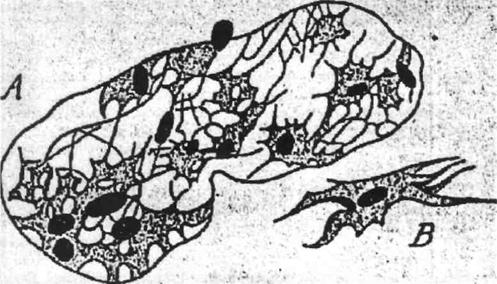Fig.1.Celule mio-epiteliale vazute la microscopul optic (dupa J. Renault).