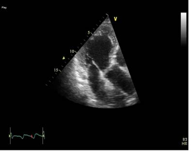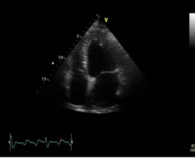 Fig. 3 Sectiune apicala doua camere, hipokinezie pereti VS anterior si inferior. Fisier hera 32 movie