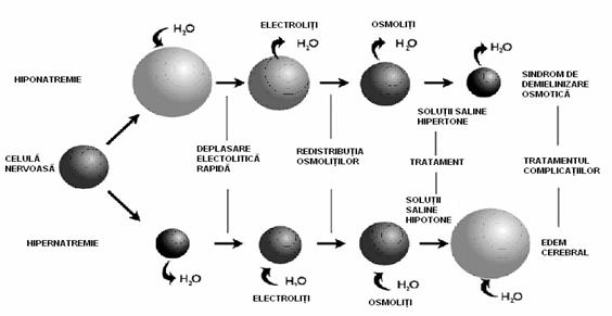 exces de ADH asociat cu adminstrarea de lichide hipotone.