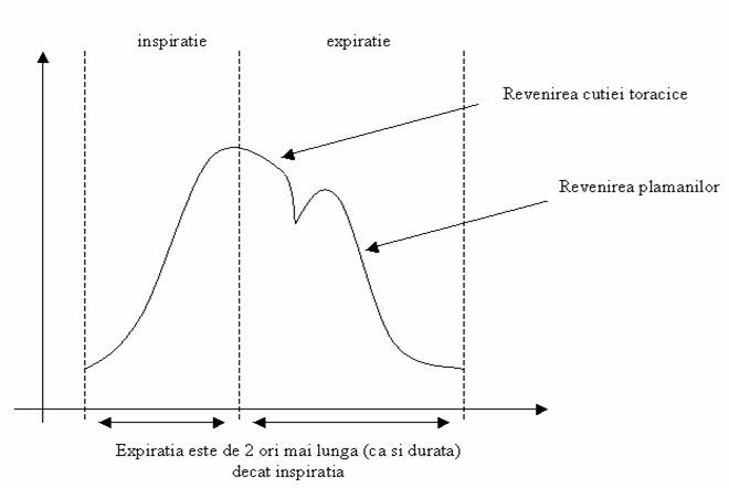 Panta expiratiei are o portiune mai brusca, coresp revenirii cutiei toracice la dimensiunile initiale, si o panta mai lina, corespunzatoare revenirii plamanilor