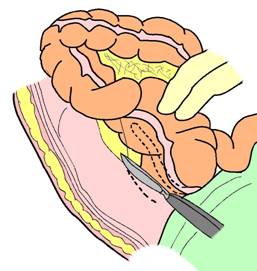 Fig. 5 - Exteriorizarea cecului (dupa P. Simici) (5)