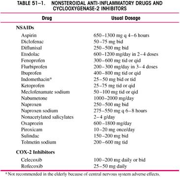 Antiinflamatoriile nesteroidiene: au efect antalgic si antiinflamator imediat. Influenteaza evolutia bolii. Indometacin 75-150mg/zi, Aspirina 2-3 g/zi, Ibuprofen 1200mg/zi, Diclofenac 500-800mg/zi.