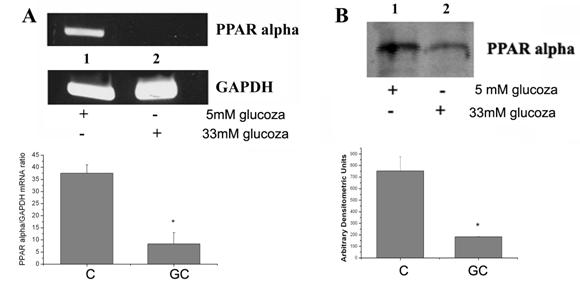 Aceste date arata ca, in CE, glucoza crescuta reduce expresia PPARa, eveniment care poate face parte dintr-un mecanism celular complex care are ca efect cresterea activarii NF-kB si AP-1, si ulterior, inducerea moleculelor pro-inflamatoare.