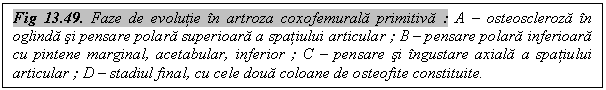 osteofite la marginea suprafetei articulare; ostefitele uneori sunt dispuse in forma de guler in jurul suprafetei articulare;
