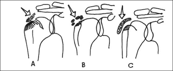 pot apare in urma calcificarilor de diferite intensitati, cu dispozitie periarticulara: