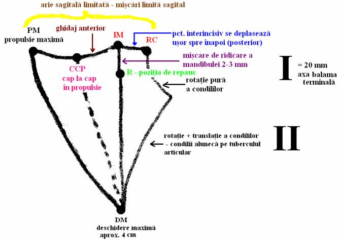 La aceasta amplitudine a deschiderii la nivelul condililor se produce rotatie pura care in jurul axei balama terminale se face intotdeauna cu pozitia condililor in RC.