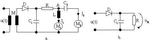 Schema simplificata a modulometrului este prezentata in fig.7.24,a. Conditia realizarii primei detectii este ca valoarea constantei de timp t=RC1 sa fie mult mai mare decat perioada Tp (Tp=1/fp) a purtatoarei si mult mai mica decat cea a semnalului modulator Tm (Tm=1/fm).
