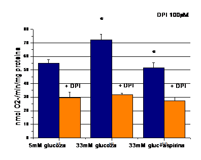 Se stie ca in diabet, excesul de glucoza duce la o crestere a productiei de specii reactive de oxigen (ROS) prin cateva cai, printre care autooxidarea glucozei, activarea NADPH oxidazei, glicarea proteinelor neenzimatice. Acumularea de anioni superoxizi este un eveniment ce candideaza la patogeneza vasculara si daunele endoteliale in diabet, si se aduc din ce in ce mai multe evidente pentru rolul important pe care il au ROS in semnalizarea celulara [Lyle AN, Griendling KK., 2006; Zmijewski et al., 2005; Tao et al., 2005]. Astfel, cantitati crescute de O2- inactiveaza NO producad peroxinitriti si produce o crestere a concentratiei de calciu intracelular ca raspuns la histamina.