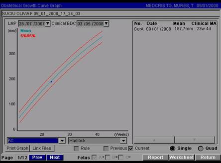 Fig. nr.202. Raport obstetrical dupa terminarea biometriei fetale , cu estimarea varstei gestationale si a greutatii fetale