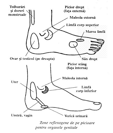 zona reflexa ovare - 3-5 minute la fiecare picior