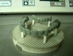 Confectionarea pieselor protetice ceramice , in laboratoarele de tehnica dentara , necesita materiale , instrumente , aparatura si chiar o deprindere speciala.Portelanul apare sub forma de praf , care apoi se amesteca cu apa sau alcool , dand o pasta smantanoasa , care se poate transpune cu o pensula fina pe suportul-metalic.