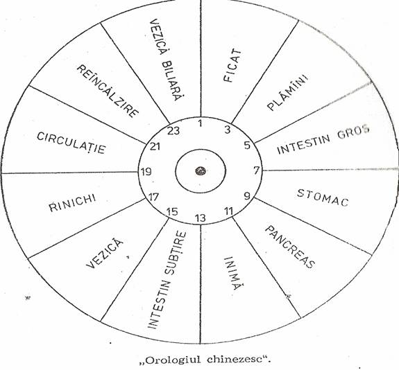 In medicina si psihologie este cunoscut si pretuit orarul chinezesc, conceptie milenara a orologiului biologic , actuala si astazi , cu modificarile inerte , dar nu de fond , provocate de ritmurile vietii moderne.Acest orologiu era cunoscut in China inca de acum cateva mii de ani, iar astazi el corespunde intocmai bioritmurilor marilor organe si functiuni.