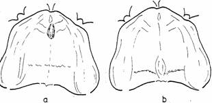 1 - torus posterior de fonna rotunjita; 2 - torus posterior extins de forma alungita; 3 - torus antero-median de forma elipsoidala, voluminos si proeminent; 4 - torus anterior de forma alungita relativ ingust; 5 - torus antero-posterior extins (fig. 5-4 a, b, c, d, e).