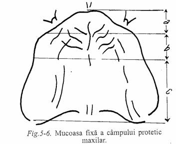 Mucoasa campului protetic maxilar este caracterizata histo-morfologic si functional protetic de particularitati care o impart in trei zone: