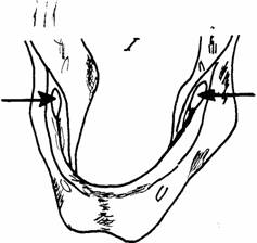 Fig. 5-3. Tuberozitatea maxilara (forma, dimensiune): a - sectiune frontala; b - sectiune sagitala.