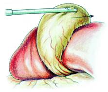Fig. 14 - Introducerea cateterului in canalul cistic pentru colangiografie