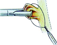 Fig. 13 - Ligatura canalului cistic larg, cu nod Roeder