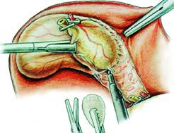 Disectia cu laser sau cu bisturiul cu ultrasunete este eficace si fara pierderi de sange.