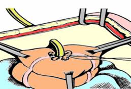 Fig. 7 - Colostomie cu pinten Edouard Quenu: fire in U care formeaza sicana (2)