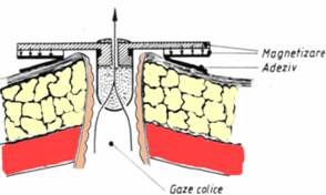 Inelul magnetic este amplasat intr-o loja creata pe fata anterioara a aponevrozei, la nivelul orificiului viitoarei colostomii, prin care se trece ansa colica montata in anus terminal. Capacul se ataseaza abia dupa 15 zile, la inceput intermitent, marindu-se progresiv durata aplicarii. Acest sistem nu se poate monta la diabetici, obezi, pacienti casectici sau cu tulburari de constienta. Montarea inelului magnetic se face in conditii perfecte de asepsie. Dispozitivul este scump si trebuie indepartat in caz de supuratie (2).