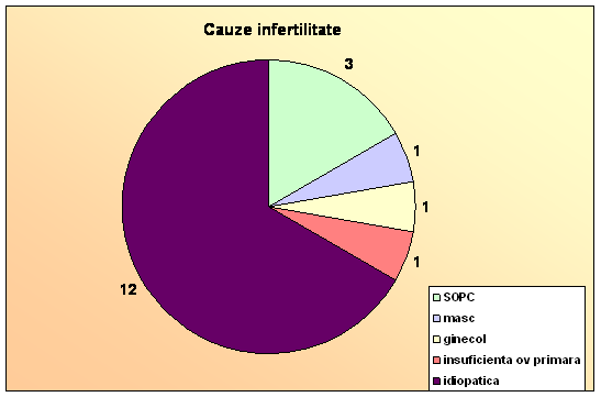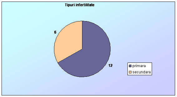 Infertilitatea a fost primara in cazul a 12 paciente (66,6%), alte 6 paciente avand in antecedente minim o sarcina obtinuta spontan.