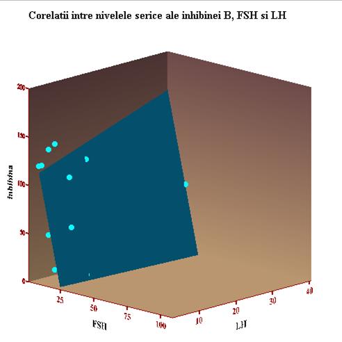 Nivelele serice ale inhibinei B in faza foliculara precoce se coreleaza deci cu volumul ovarian si cu numarul foliculilor evidentiati ecografic, constatare in concordanta cu datele din literatura care sustin ca valorile inhibinei sunt mai mari la pacientele cu SOPC (Lockwood et al. ); exista si o explicatie fiziopatologica a fenomenului - SOPC se caracterizeaza prin persistenta unui numar mare de foliculi nematurati, in faza antrala precoce, care sunt sursa de secretie a inhibinei B.