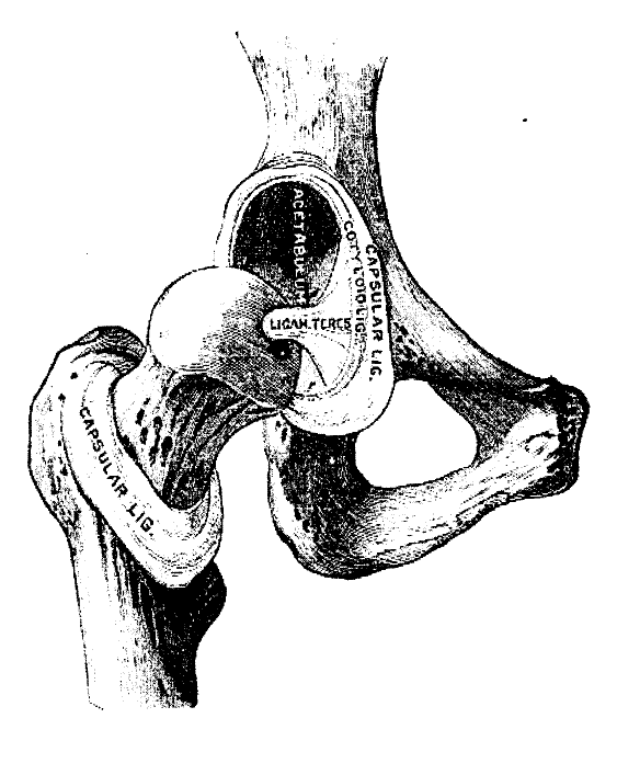 Ligamentul rotund. Considerat ca vestij otogenic al muschilor ambieni, ligamentul rotund se prezinta ca o lama fibroasa lunga de aproximativ 3 cm care se intinde de la foseta capului femural la scobitura ischio-pubiana a osului coxal.