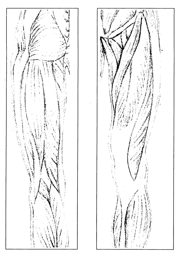 fibre longitudinale de la coxal la femur, mai bine evidentiate anterior;
