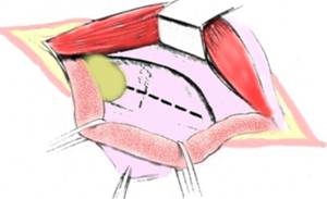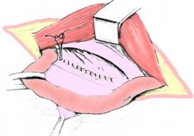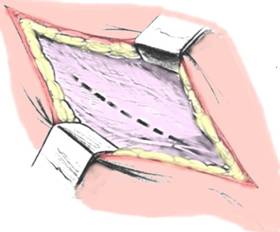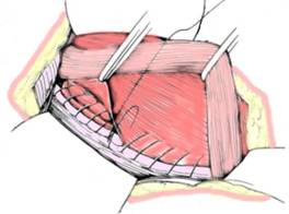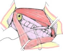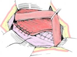 Fig. 15 - Procedeul Mac Vay: incizie de relaxare a aponevrozei marelui drept abdominal (4)